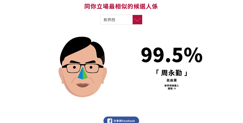香港2017特首選舉已經正式開始咗,雖然你同我都無票,但大家對呢三位候選人嘅印象點呢?有人話,識揀一定係揀「lesser evil」果位,又有人話要揀個「好打得」嘅,亦有人要求符合高民望、高票、高認受性高乜乜乜,講到咁虛,你又知唔知到底自己同咁多位嘅理念又有幾夾?如果大家未有時間去了解佢地嘅政綱,又未有機會睇佢地嘅辯論,不如先玩個簡單嘅遊戲,測試下你嘅理念同邊個候選人最相似?